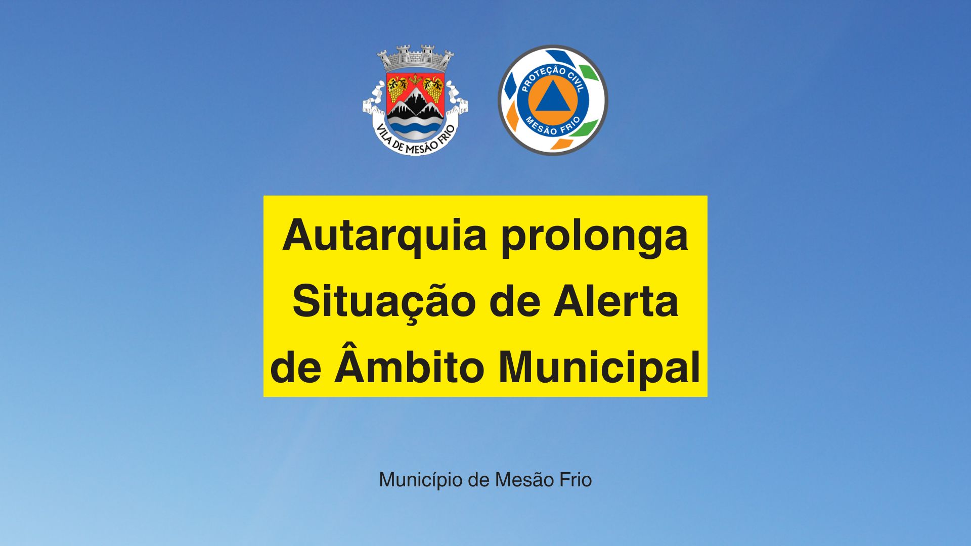 O Município de Mesão Frio informa que se mantém em vigor, em todo o concelho, a Situação de Alerta de Âmbito Municipal, declarada a 03/02/2026, na sequência da persistência de condições meteorológicas adversas.